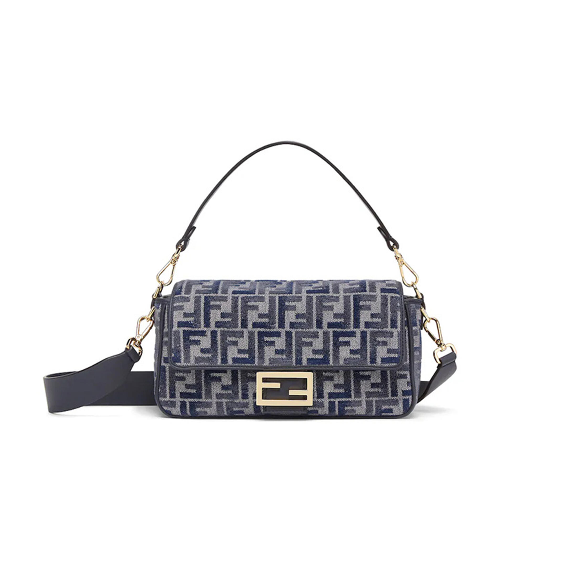 F**di BAGUETTE FF EMBROIDERED DENIM TOTE BAG IN BLUE 8BR600AP4NF1LN5 (27*15*6cm) Master Quality