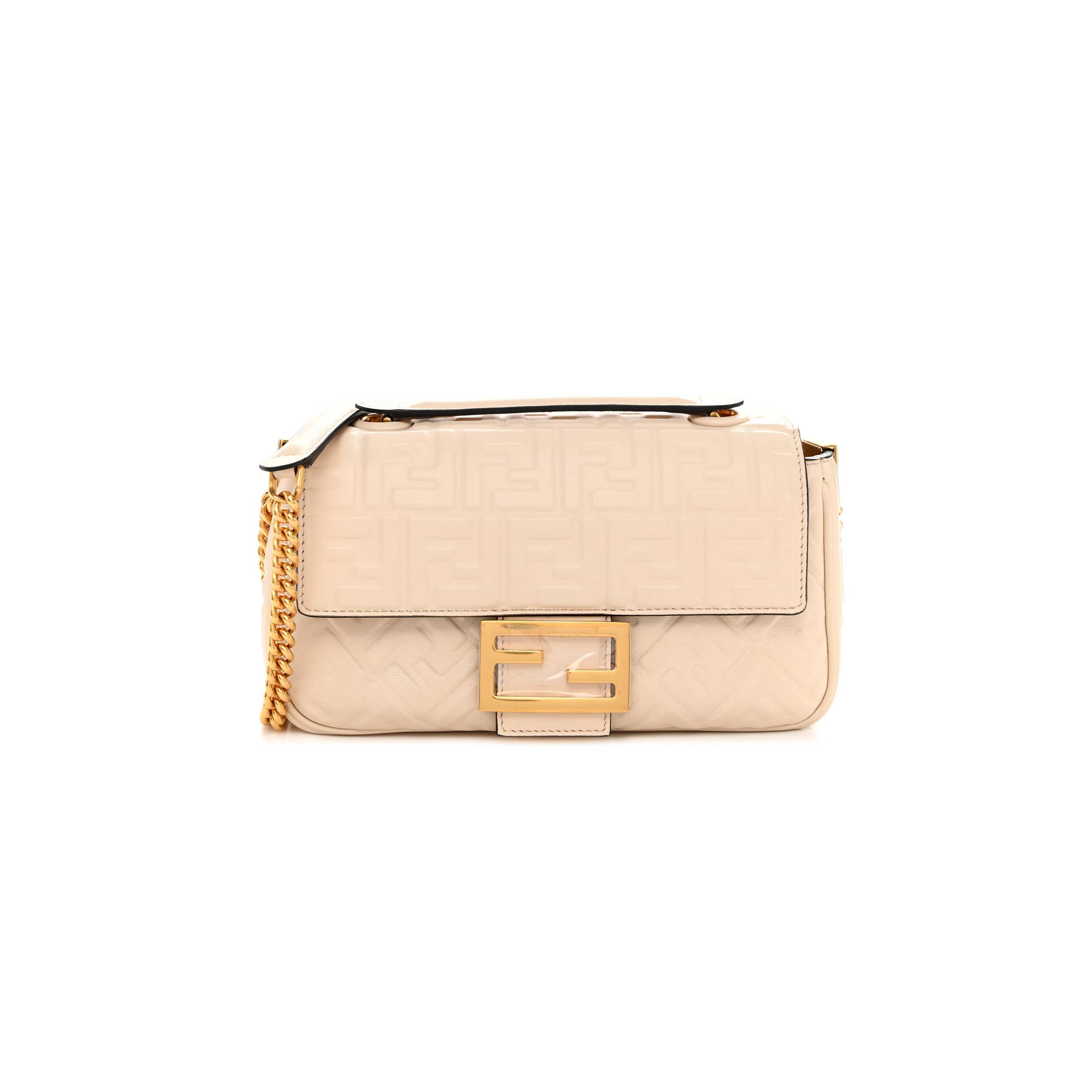 F**di NAPPA SMALL FF EMBOSSED MIDI CHAIN BAGUETTE WHITE (23*13*6cm) Master Quality