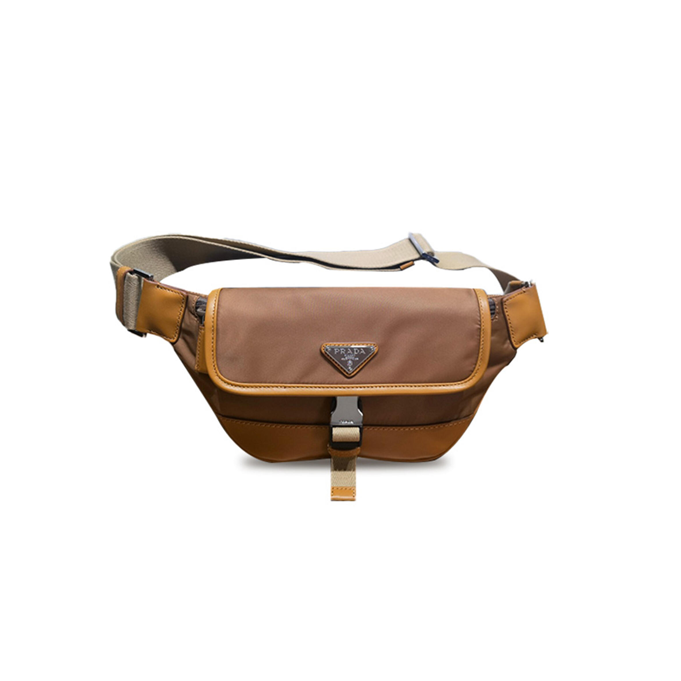 Pra*a MILITARY CARAMEL RE-NYLON AND LEATHER SHOULDER BAG 2VH176 (18*15*5cm) Master Quality