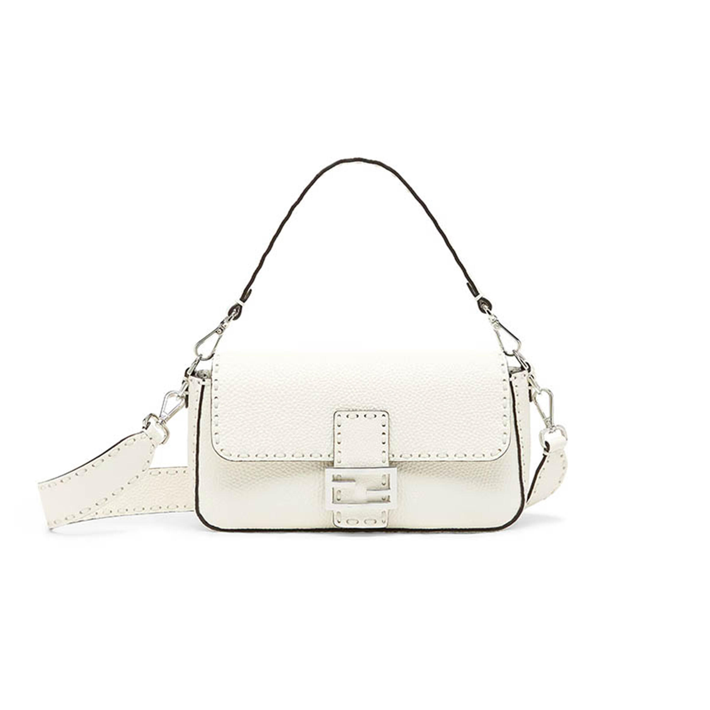 F**di VITELLO KING CEYLON WOVEN BAGUETTE WHITE ICE (29*15*7cm) Master Quality