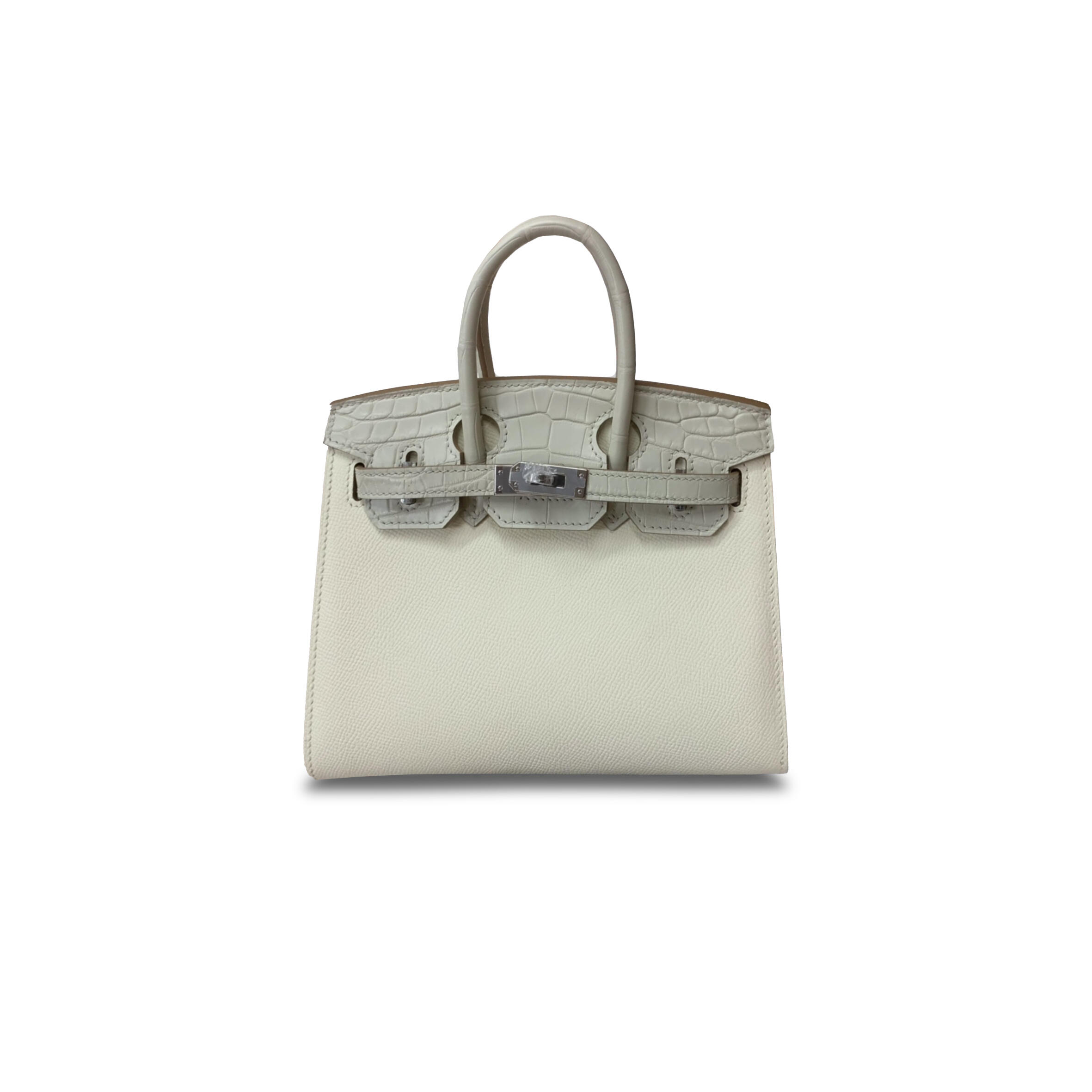 H**me5 MASTER BIRKIN 20 CROCODILE AND CALF LEATHER MILKSHAKE WHITE GLACIER WHITE SILVER BUCKLE H076210CK06 (20*16*11cm) Master Quality