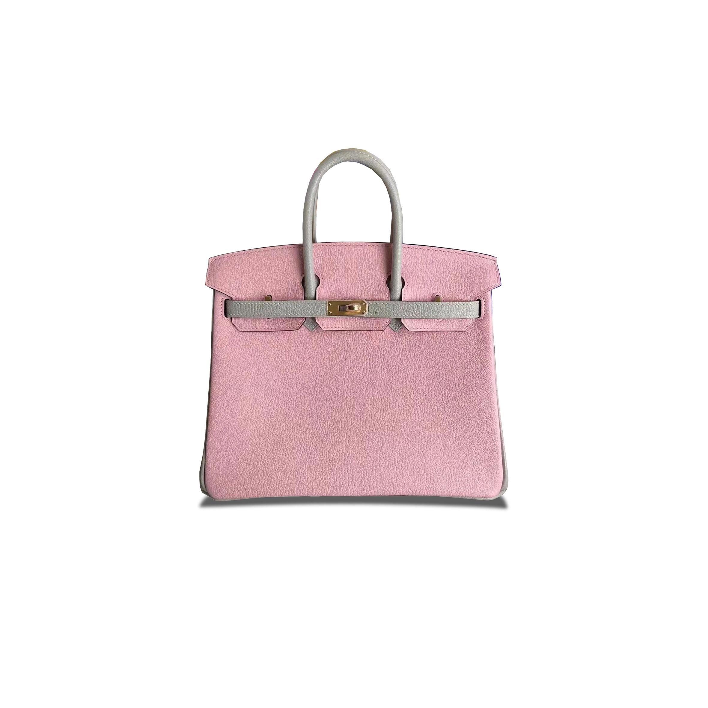 H**me5 BIRKIN 25 CHEVRE LEATHER CHERRY BLOSSOM AND PEARL GREY GOLD BUCKLE H028361CC69 (25*20*13cm) Master Quality
